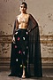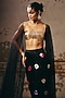 Featuring a black cape in gajji and net base. It is paired with a rose gold blouse and a black shibori skirt. Accentuate it with dangler earrings and heels for a festive look.