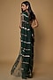 Bottle Green Net Embroidered Pre-Draped Saree Set