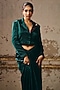 Featuring a dark green blazer in mashru base. It is paired with a skirt. Accentuate it with dangler earrings and heels for a cocktail look.