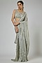 Dusty Green Fuji Crepe Embroidered Pre-Stitched Saree Set