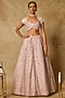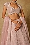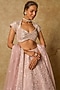 Featuring a dusty pink lehenga in tulle base with embroidery. It is paired with a mashru silk embroidered blouse and a dupatta. Accentuate it with dangler earrings and heels for sangeet or wedding ceremonies.