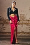 Featuring a black blazer in mashru base. It is paired with a hot pink skirt. Accentuate it with dangler earrings and heels for a cocktail look.