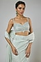 Light Mint Fuji Crepe Embroidered Pre-Stitched Saree Set