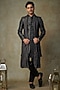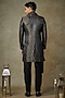 Featuring a black sherwani in viscose base with embroidery. It is paired with mashru pants and a silk satin dupatta. Perfect attire for a wedding, engagement or sangeet ceremony, exuding traditional charm and elegance.