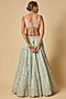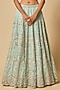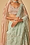 Featuring a mint green lehenga in tulle and tissue silk base with embroidery. It is paired with a mashru silk embroidered blouse and two dupattas. Accentuate it with dangler earrings and heels for mehendi or wedding ceremonies.