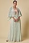 Featuring a mint green cape in tulle base with embroidery. It is paired with gharara pants and a peach paper tissue draped blouse. Accentuate it with dangler earrings and heels for pre-wedding ceremonies.