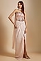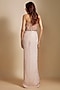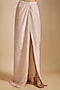 Featuring a peach corset in mashru, net and tissue base with hand embroidery. It is paired with a rose gold skirt. Accentuate it with statement jewellery and heels for a cocktail look.