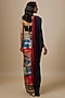 Featuring a rust saree in gajji and mashru base with ajrakh print. It is paired with a black blouse. Accentuate it with jhumka earrings and heels for a festive occasion or formal evenings