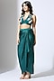 Teal Green Natural Crepe & Tissue Draped Skirt Set