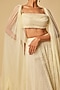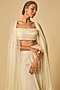 Featuring a yellow ruffled cape in tulle base. It is paired with a draped blouse and embroidered gharara pants. Accentuate it with dangler earrings and heels for pre-wedding ceremonies.