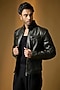 Featuring an antique black biker jacket in italian leather base with zip pockets and stand collar. Style it with jeans and shoes, ideal for bike trips.