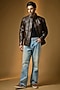 Featuring an antique brown jacket in leather base with flap and zip pockets. Style it with jeans and shoes, ideal for bike trips.