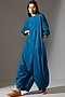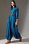 Featuring a blue jumpsuit in cotton base with fold up sleeves and balloon pants.