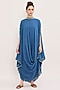 Blue Handwoven Cotton Embroidered Draped Cowl Dress