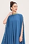 Featuring a blue draped cowl dress in handwoven cotton base with ribbed collar and embroidery. It is paired with a matching inner and a contrasting belt. Accentuate it with dangler earrings and heels for an evening look.
