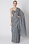 Blueish Grey & Dark Blue Striped Saree