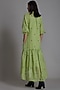 Featuring a green maxi dress in pure linen base with hand embroidery. It is paired with a full length inner.