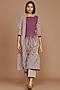 Featuring a mauve pink and ivory tunic in handwoven cotton base with color blocked stripes and pleats. This contains only one piece.