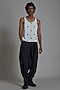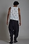 Featuring an oatmeal-colored handwoven tank top in pure linen base with embroidery. It is paired with black cotton balloon pleated pants. Style this outfit with boots and hit the road in style, exuding charm and elegance.