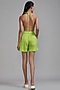 Featuring a neon green overlap bralette in cotton base. It is paired with high-waisted shorts. Pair it with hoops earrings and wedges. Perfect wear for a vacation.