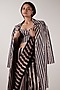 Featuring a pink and black saree in soft mul and cotton base with striped hand block print. It is paired with a corset, a belt and a trench jacket. Accentuate it with statement jewellery and heels for sangeet or wedding ceremonies.