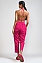 Featuring pink narrow pants in cotton base with elasticated back. Pair it with hoops earrings and wedges. Perfect wear for a vacation.