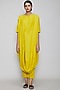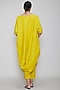 Featuring a yellow crop top in handwoven cotton base with drawstrings and pleats on the sleeves. It is paired with matching harem pants. It is dyed in azzo free dye.
