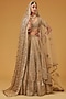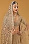 Featuring a beige lehenga in tissue base with hand embroidery. It is paired with an embroidered blouse, a dupatta and a veil. Accentuate it with statement jewellery and heels for a wedding or engagement ceremony.