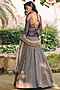 Featuring a dull gold lehenga in chanderi silk base with banarasi embroidery. It is paired with a contrasting brown blouse and an organza dupatta having mirror and pearl embroidery.
