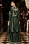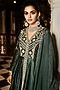 Featuring a green peplum in handloom chanderi silk base with aari, pittan, and zardosi embroidery. It is paired with matching sharara pants having embroidery, including georgette and organza dupatta.