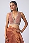 Featuring a mouse draped saree in chanderi base. It is paired with a blouse and a cape having golden dori embroidery. Style it with statement jewellery and heels for a sangeet or wedding ceremony.