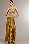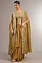 Featuring a mustard cape in soft georgette organza base with kasab, gota patti, zari work and aari embroidery. It is paired with a chanderi blouse and a satin dhoti. Accentuate it with zircon jewellery, a clutch and heels for a cocktail soiree, haldi or sangeet ceremony.