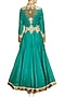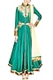 Featuring a rama green chanderi anarkali with thread and sequins embroidery in floral pattern on bodice.