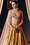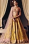 Featuring a yellow lehenga in silk base with aari and resham thread embroidery. It is paired with a blouse and a dupatta. Accentuate it with polki jewellery, embellished heels a wedding or a haldi ceremony.