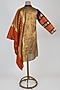 Featuring a gold tunic in silk base with high neck. This contains only one piece.