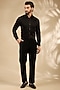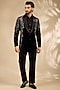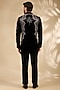 Featuring a black tuxedo in micro velvet base with embroidery. It is paired with a shirt and pants. Style it with pair of shoes for a reception, sangeet or engagement ceremonies.