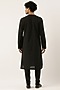 Featuring a black and grey draped kurta in linen base with metal buttons. It is paired with matching pants.