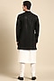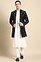 Featuring a black indo western jacket in silk slub base with mirror embroidery.