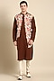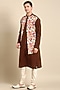 Featuring a brown and yellow kurta in cotton linen base with asymmetric cut and print. It is paired with ivory churidar pants.