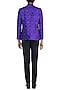 Featuring a purple bandhgala jacket in silk ikat weave base.