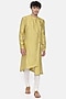 Featuring a yellow kurta in silk jaquard base. It is paired with contrasting white churidar pants.