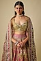 Featuring a golden and pink lehenga in silk base with zari, gota, mirror and sequins embroidery. It is paired with a blouse and a chanderi dupatta. Accentuate it with statement earrings and heels for sangeet ceremonies.