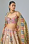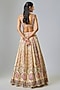 Featuring an ivory lehenga in silk base with resham, mirror, sequins and gota embroidery. It is paired with a chanderi blouse and a chanderi dupatta. Accentuate it with statement earrings and heels for festive occasions or wedding ceremonies.