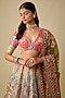 Featuring a light mint green lehenga in silk base with resham, gota, mirror and sequins embroidery. It is paired with a blouse and a chanderi dupatta. Accentuate it with statement earrings and heels for sangeet ceremonies.