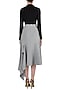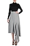 Featuring a dusty blue asymmetrical skirt in wool tweed base.