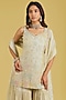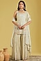 Featuring a beige kurta in tissue base with resham, cutdana and sequins embellishment. It is paired with an embellished gharara and a dupatta. Accentuate it with statement jhumkas and embellished juttis for a graceful festive look, perfect for wedding functions or cultural celebrations.