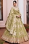 Bright Green Tissue Floral Embroidered Lehenga Set