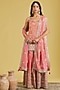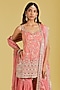 Featuring a carrot-colored kurta in tissue base with embroidery. It is paired with an embroidered gharara and a dupatta. Accentuate it with statement jhumkas and embellished juttis for a graceful festive look, perfect for wedding functions or cultural celebrations.