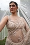 Featuring a golden saree in net base with floral, lotus and beads embroidery. It is paired with an embroidered blouse. Style it with zircon jewellery, block heels and an embellished clutch for a reception, cocktail nights, or evening celebrations.
