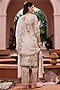 Featuring a golden kurta in royal chinon base with floral jaal embroidery. It is paired with pants and a dupatta. Style it with zircon jewellery, block heels and an embellished clutch for a festive, sangeet or engagement ceremony.